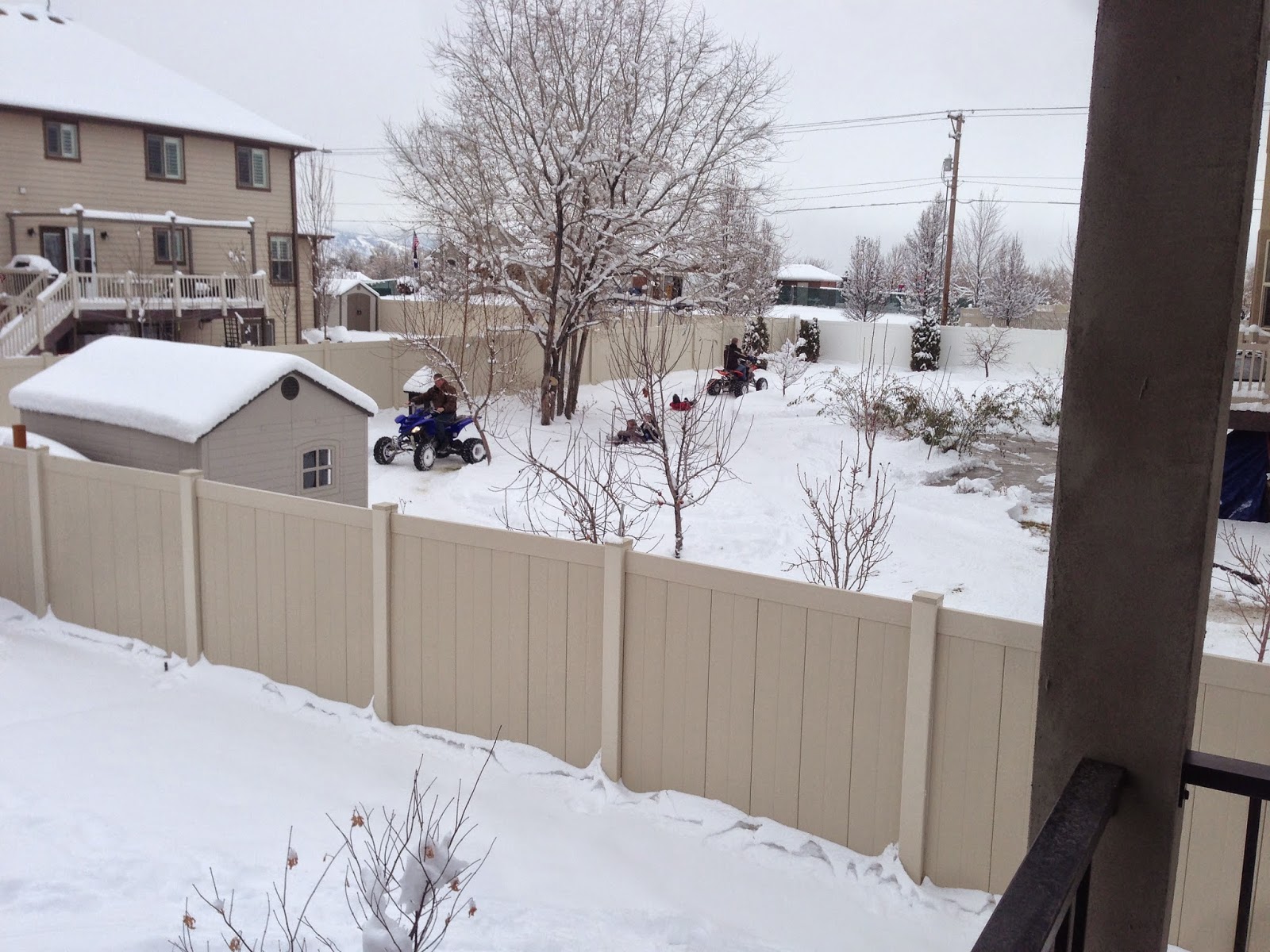 Our neighbor Chuck, giving the kids rides on his sled/four wheeler